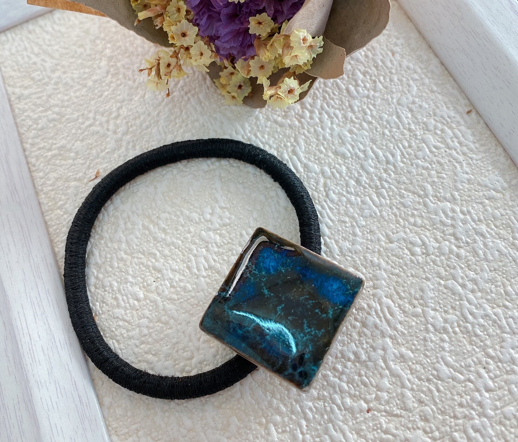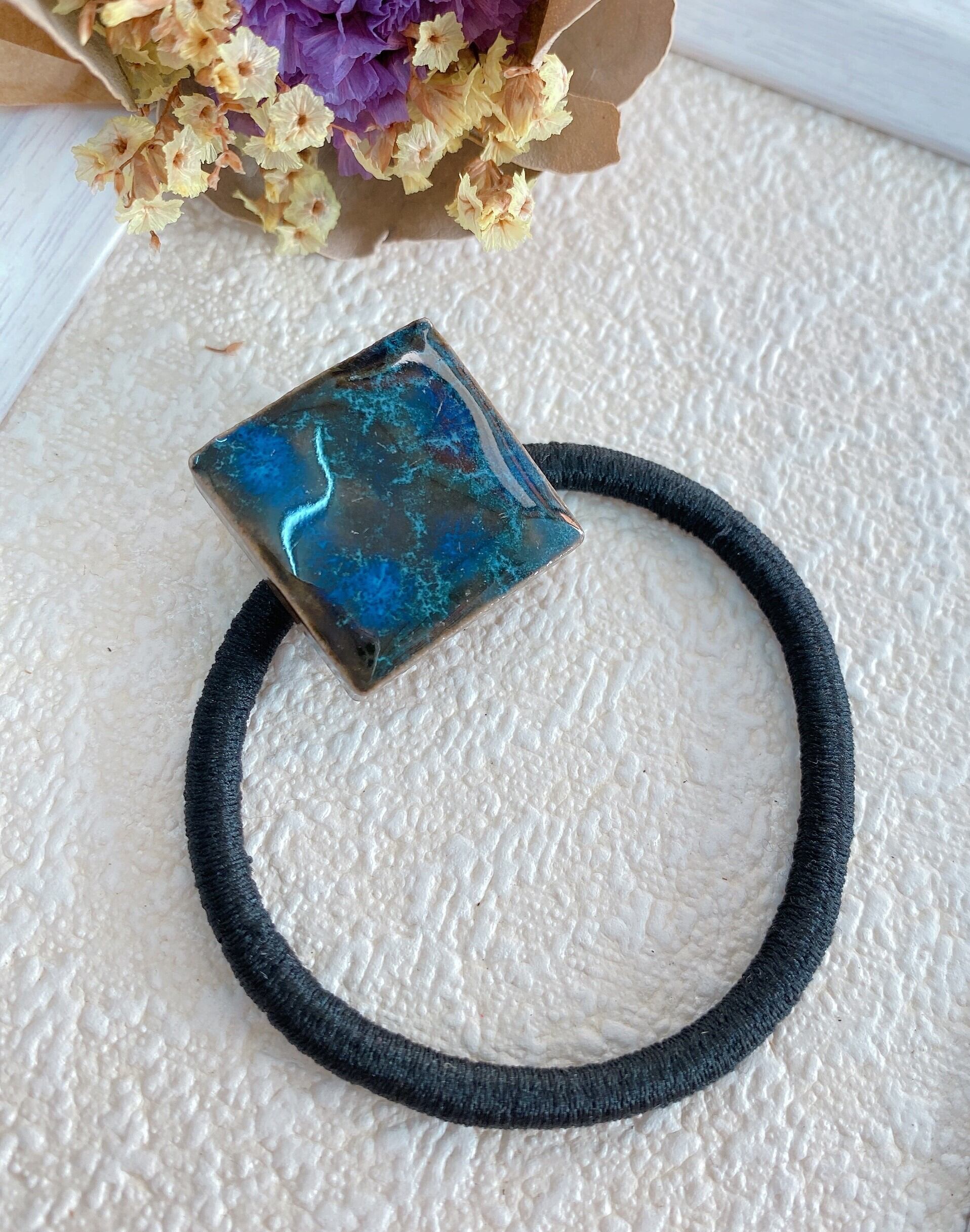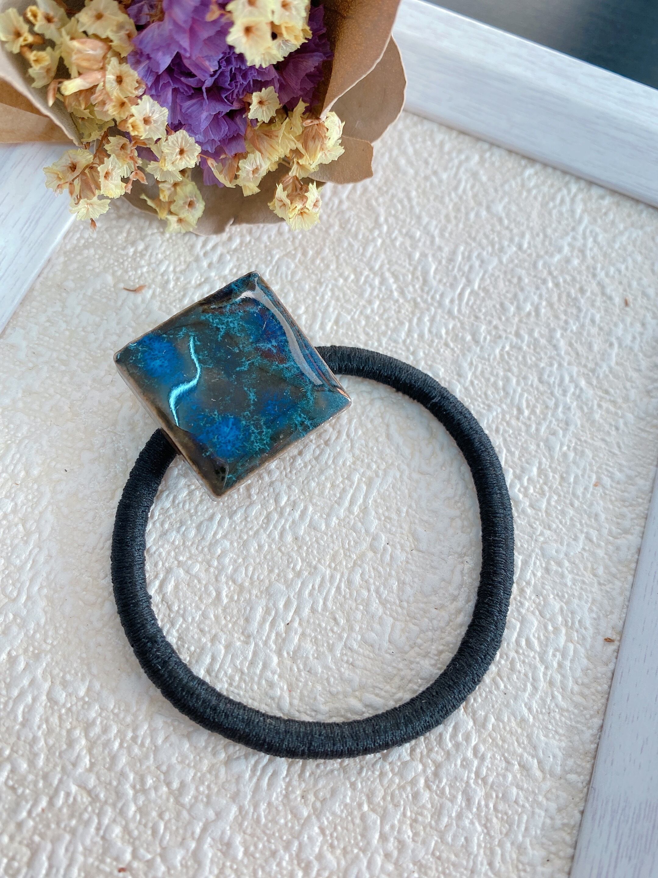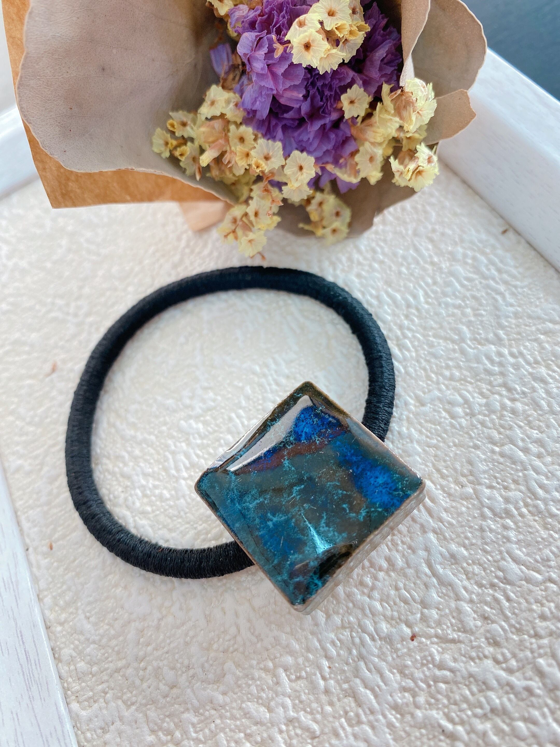 美濃焼タイルのヘアゴム(群青色)