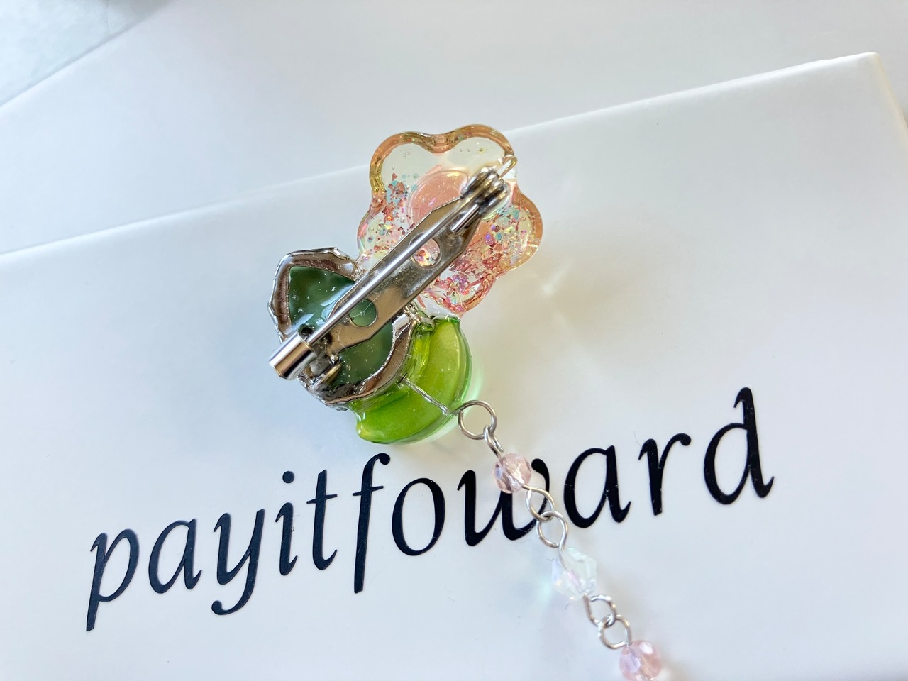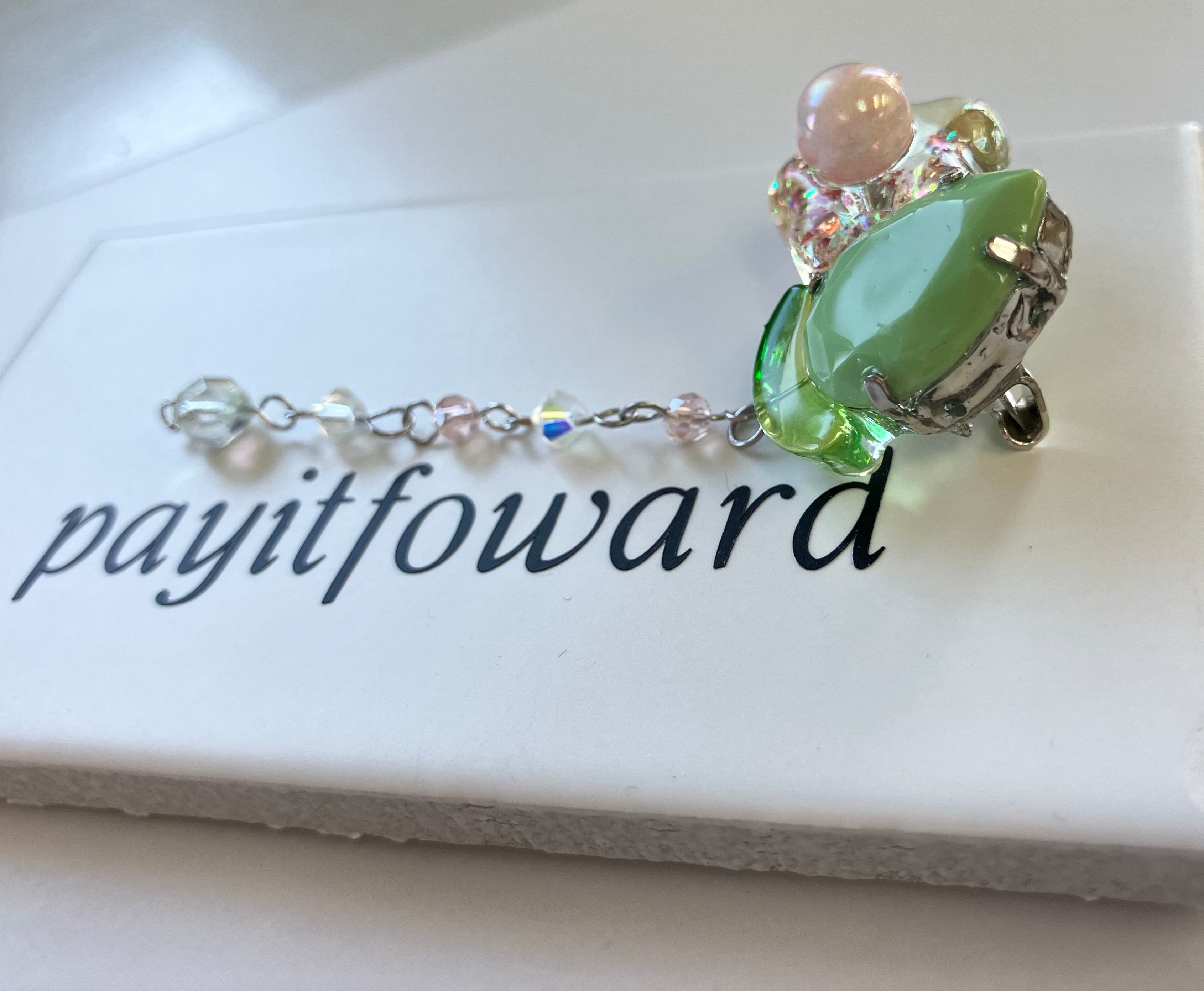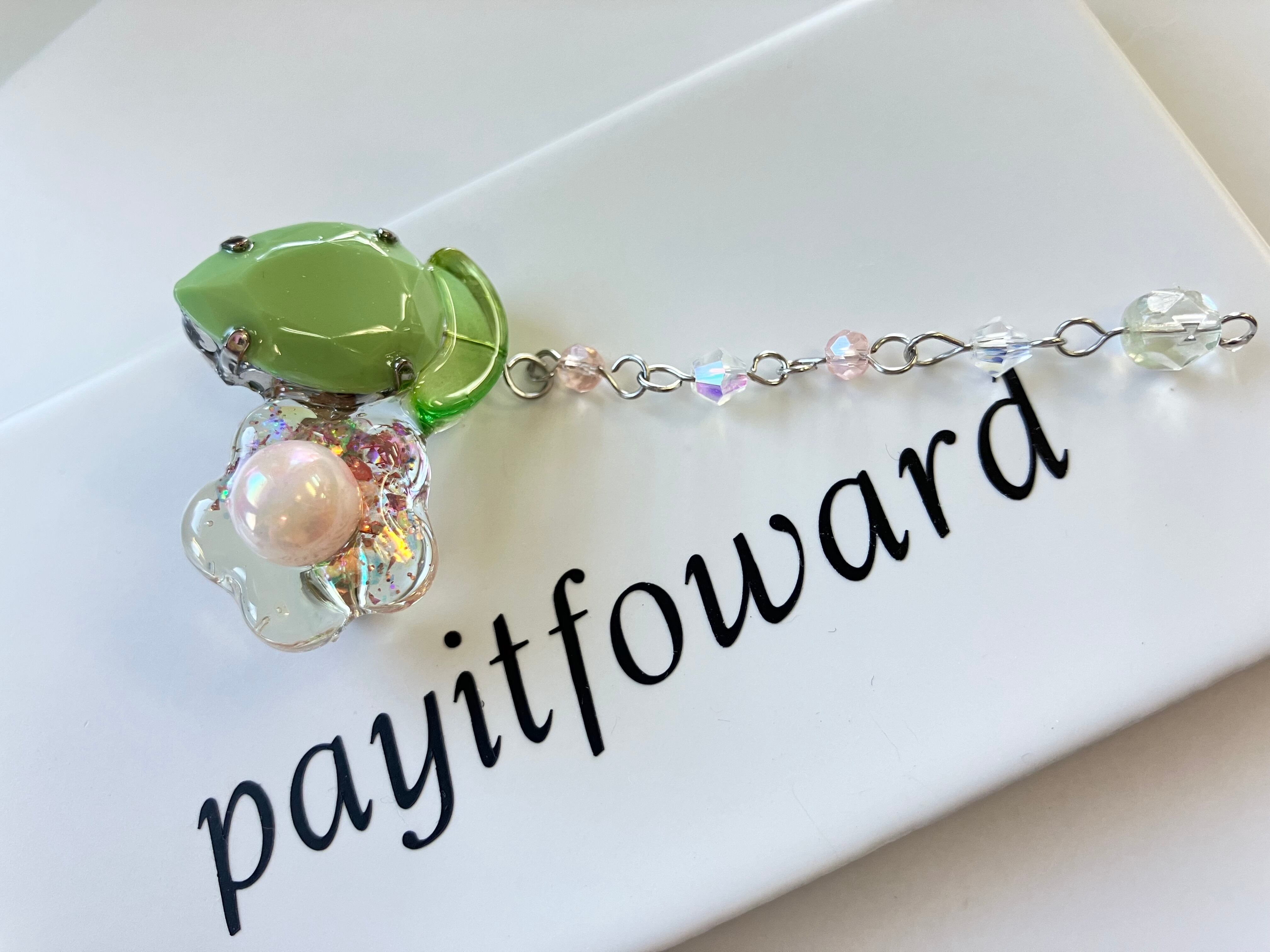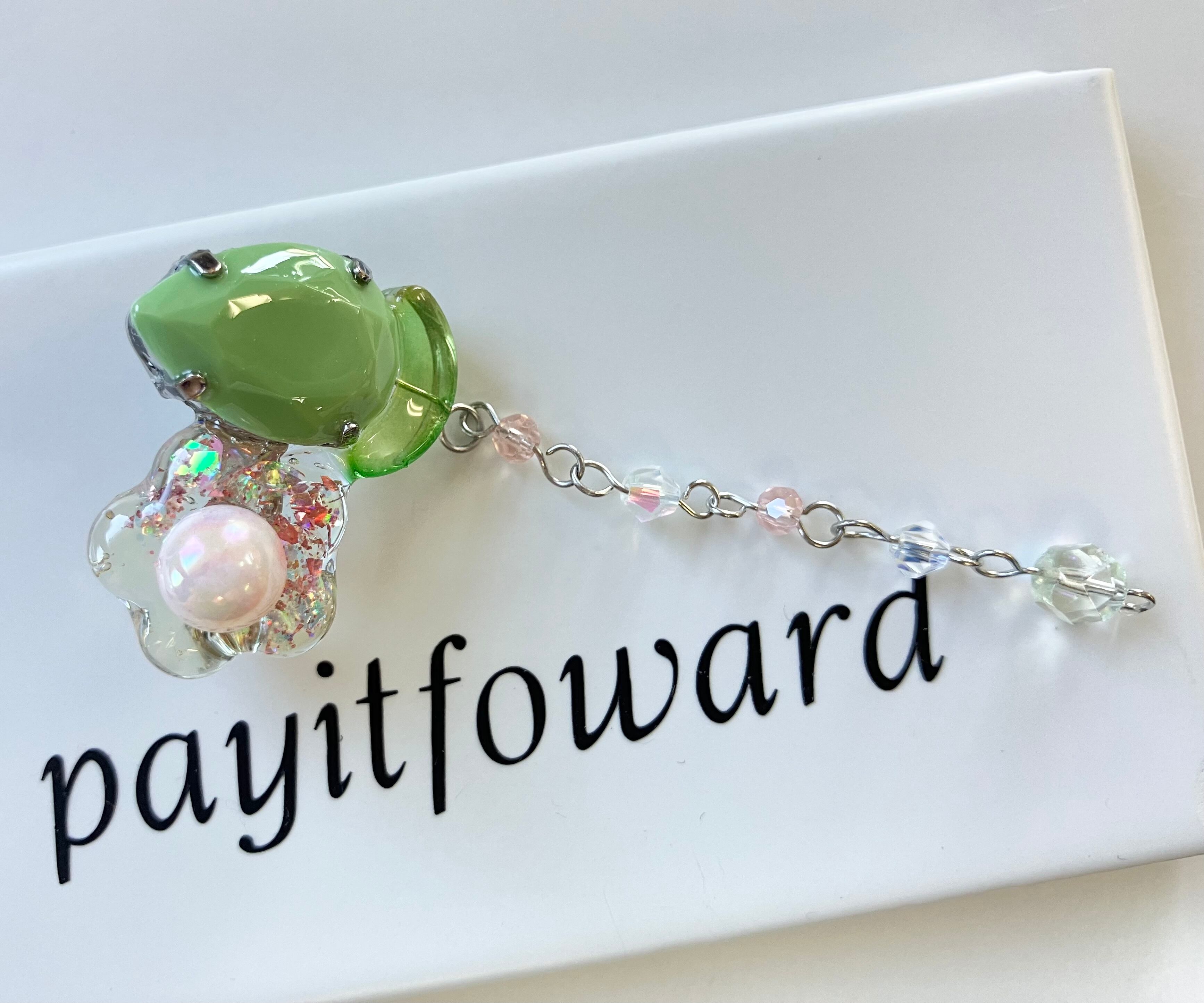 かえるとお花のブローチ 喜平チェーンアクセサリー グリーン | payitfoward